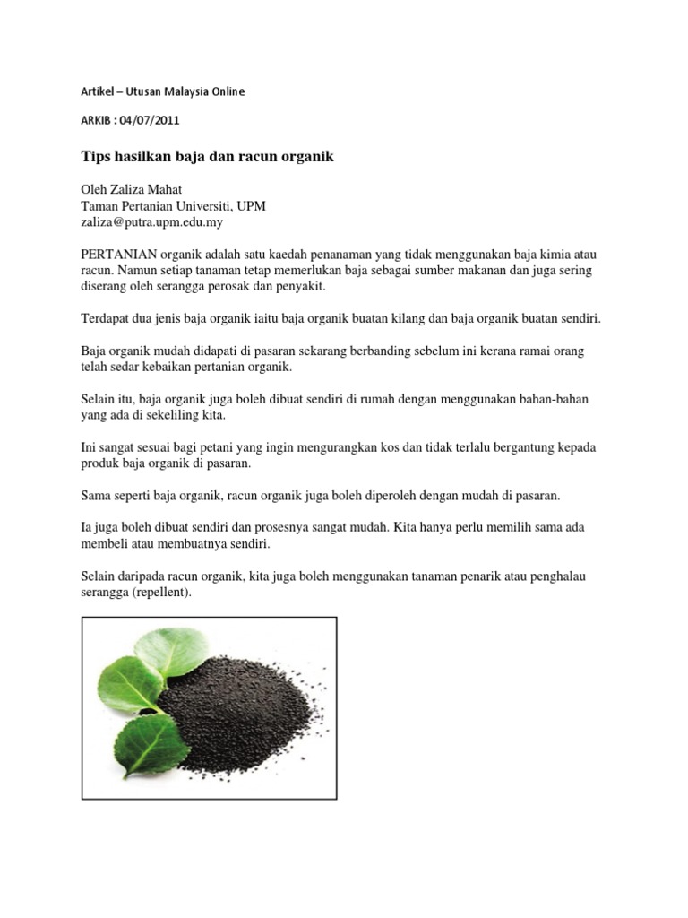 Berminat untuk mendapatkan baja organik avvi bergred foliar ini boleh hubungi saya di talian 0134763374 atau whatsapp 0135057840.jika ingin baja buatan malaysia ini dikeluarkan oleh warisan buana enterprise m. The greatest baja organik doloplus. Proses pereputan secara semula jadi. Enggak perlu merogoh kocek terlalu dalam, masker wajah berbahan organik ini juga mudah dibuat lho! Jadi, pastinya anda sedang mencari resepi racun organik buatan sendiri di rumah yang selamat digunakan dan berikut kami kongsikan cara paling mudah bagaimana untuk membuat sendiri racun organik yang paling selamat, mudah dan paling penting murah. Batang dan daun membesar 1. Walaupun mungkin juga membuat banyak baja organik sendiri, apabila tenaga kerja, masa, dan sumber lain diambil kira, baja organik buatan sendiri biasanya lebih mahal daripada baja. Baja organik ada pelbagai jenis dan pilihan. See more of baja organik buatan malaysia produk muslim on facebook. Pupuk npk organik merupakan pupuk organik buatan (baik itu cair atau padat), yang mengandung unsur hara terutama nitrogen, fosfor, dan juga kalium. ¨ tujuan rawatan permukaan adalah untuk. Rahsia baja organik kulit telur | menang #mykif fasa 2 2021, april. Kebanyakan tukang kebun membuat baja mereka sendiri dengan beberapa barangan rumah biasa.