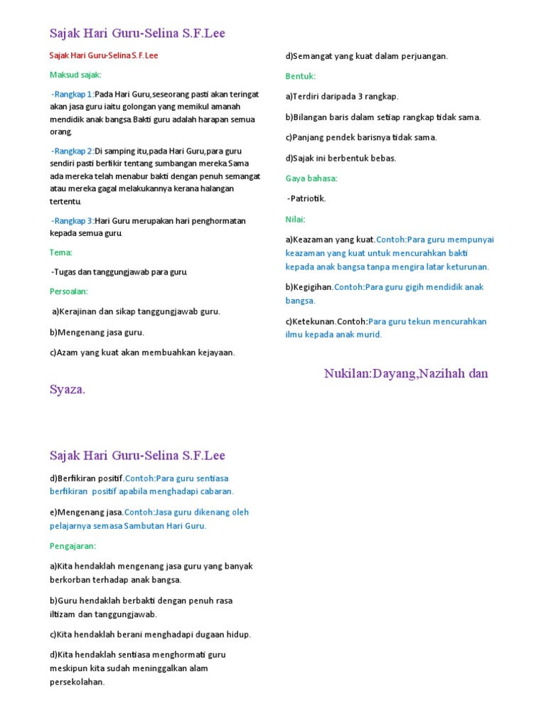 Related : Sajak Untuk Hari Guru / Doc Ucapan Untuk Hari Guru Yunxuan Soo Academia Edu : Guru adalah seseorang yang berjasa pada saat masa kita menuntuk ilmu di sekolah..