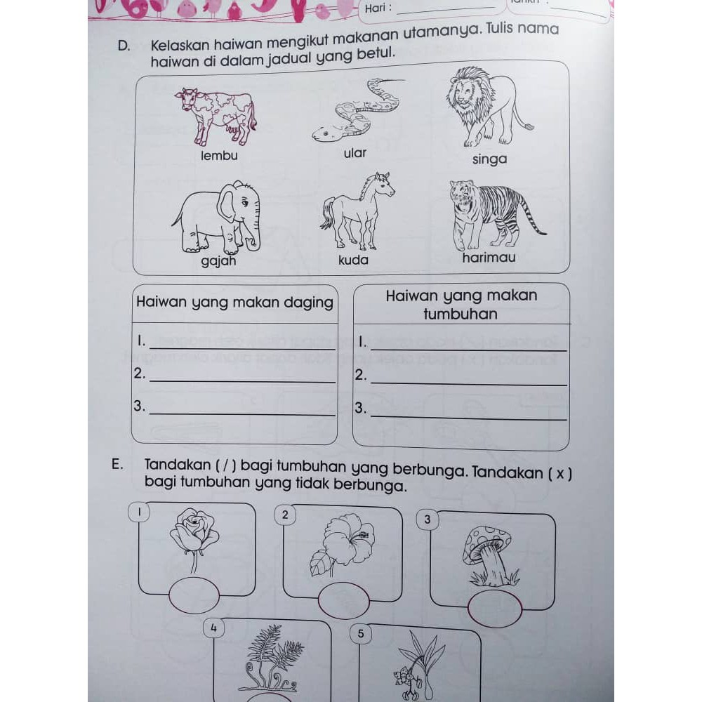 Berikut merupakan koleksi latihan lembaran kerja sains prasekolah untuk murid dan anak anak di prasekolah seawal 4 tahun dan murid tahun 1 dan 2.